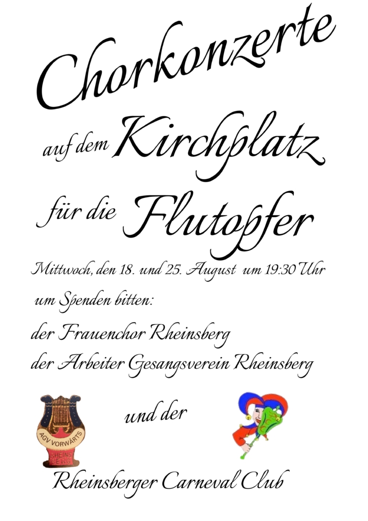 Die Chorkonzerte für die Flutopfer. Mit dabei: Der Frauenchor Rheinsberg, der Arbeitergesangsverein Rheinsberg und der Rheinsberger CarnevalClub.